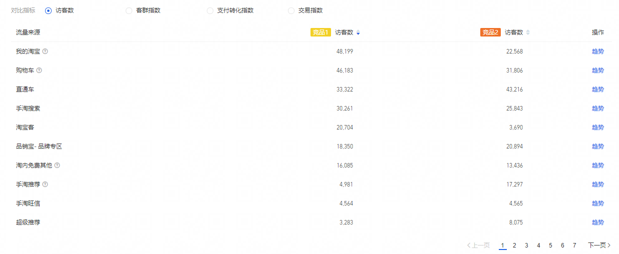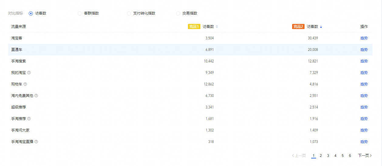 下图为竞品的流量结构,基本是付费+淘客为主,类目的免费流量较少,需通过付费来拉升销量的同时,提升搜索权重。这里重点就是通过组合sku来提升客单价,支持付费投产。进而可加大付费投入。