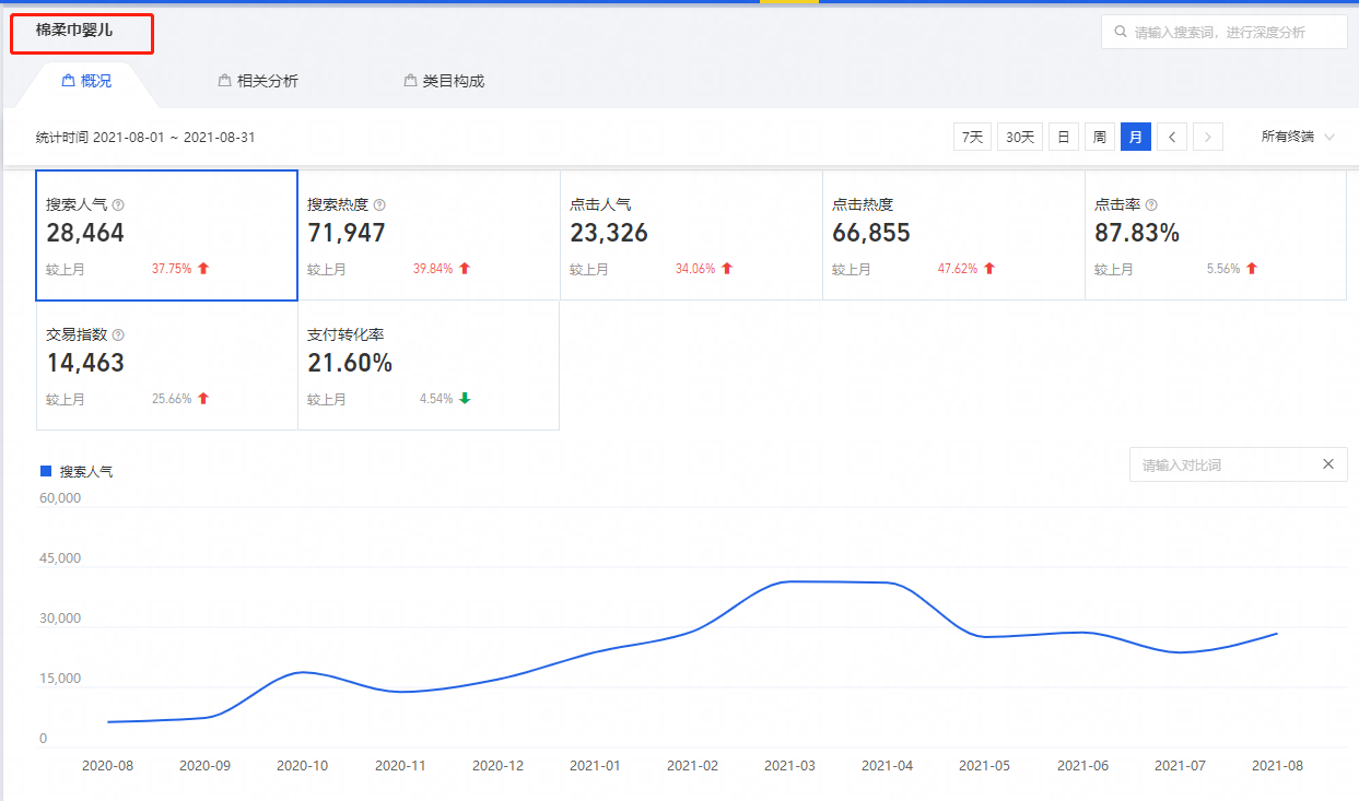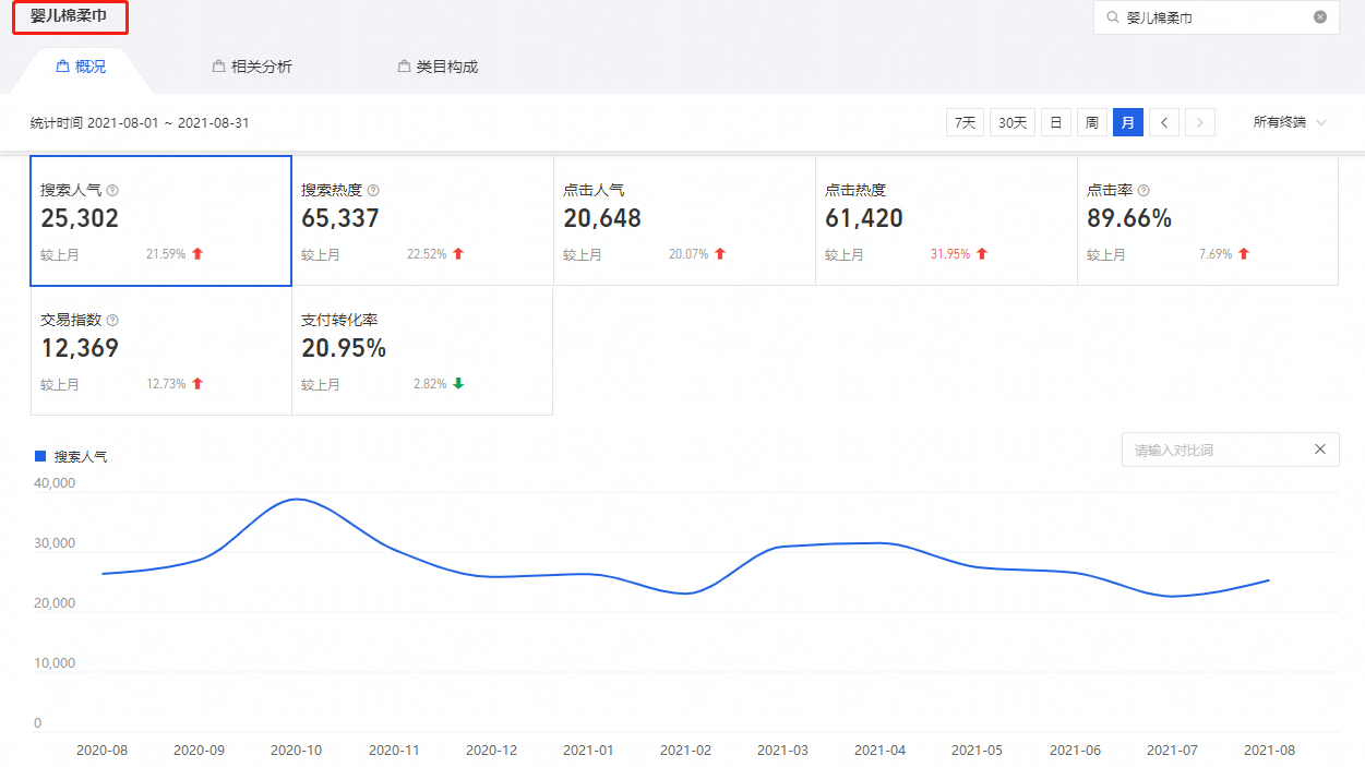 上图为棉柔巾的市场趋势,从8月份开始,持续到次年的4月份,属于市场旺季。