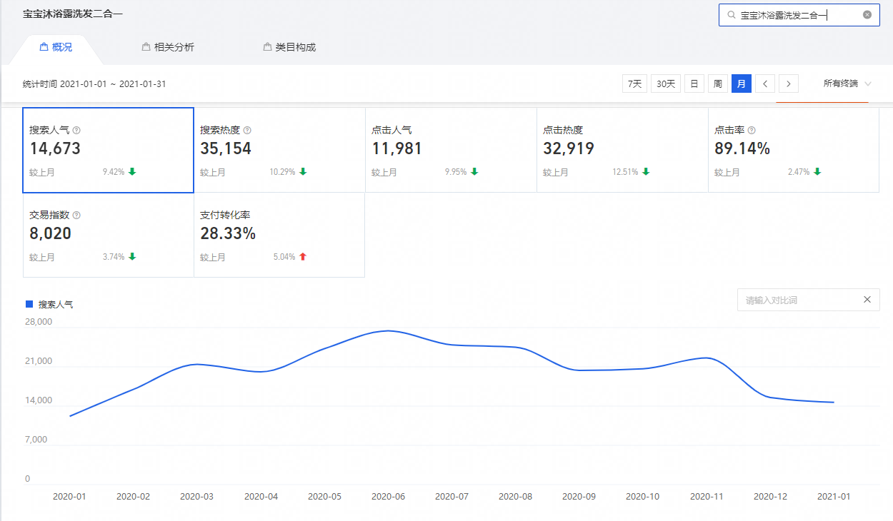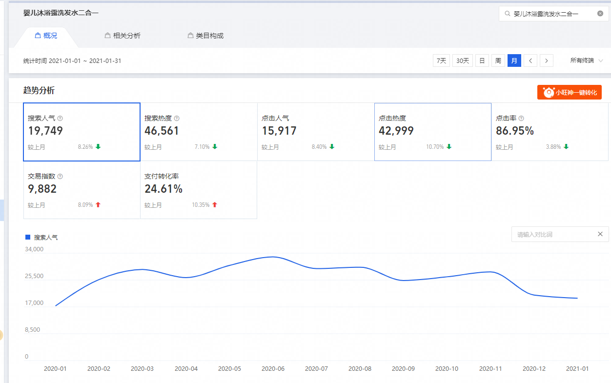 上图为沐浴露洗发二合一的市场趋势,从1月份开始,持续到8月份,属于市场的高峰期,9-12月份基本是维稳时期,参考市场趋势。